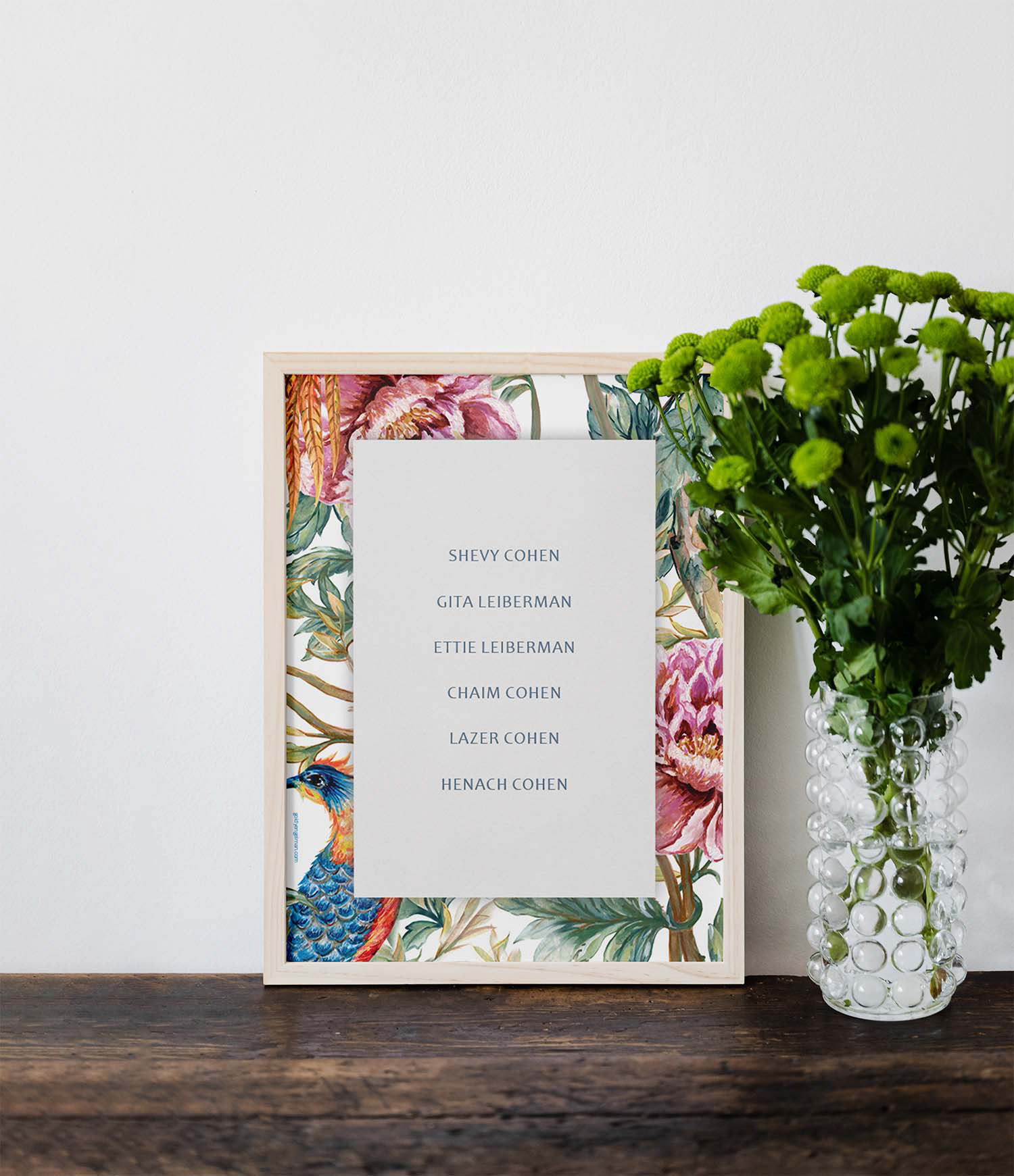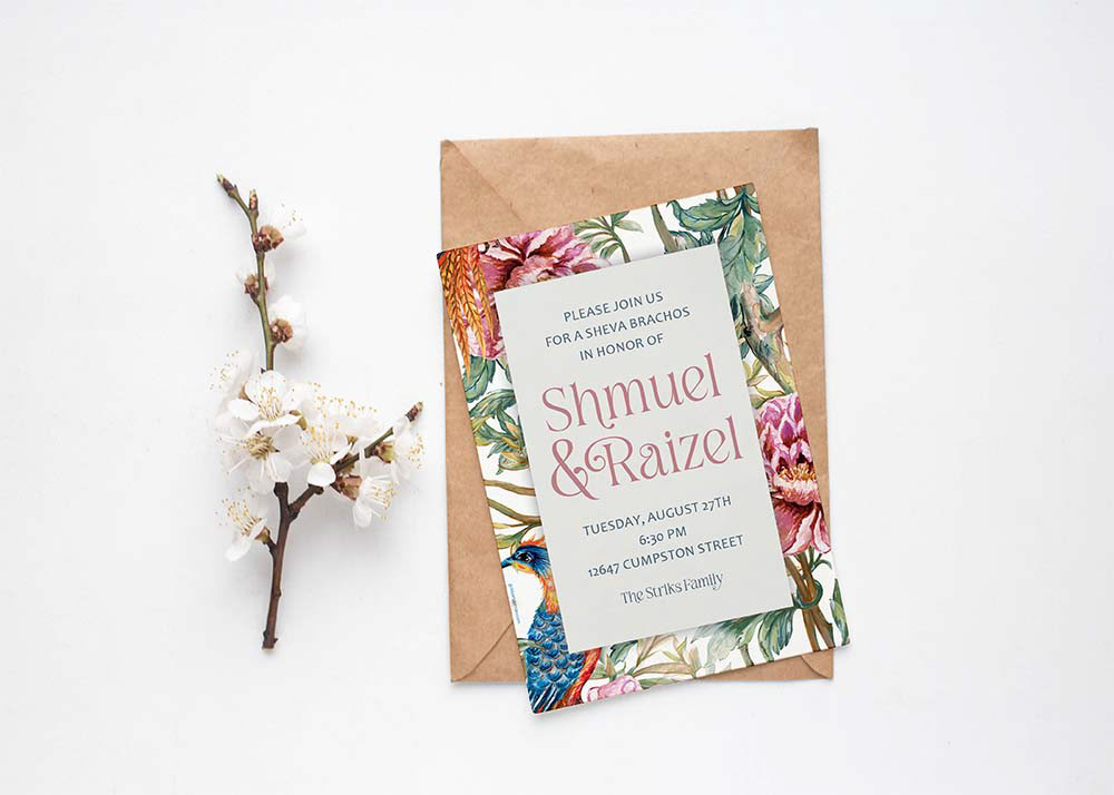 Invitation and table place cards for a Sheva Brachos